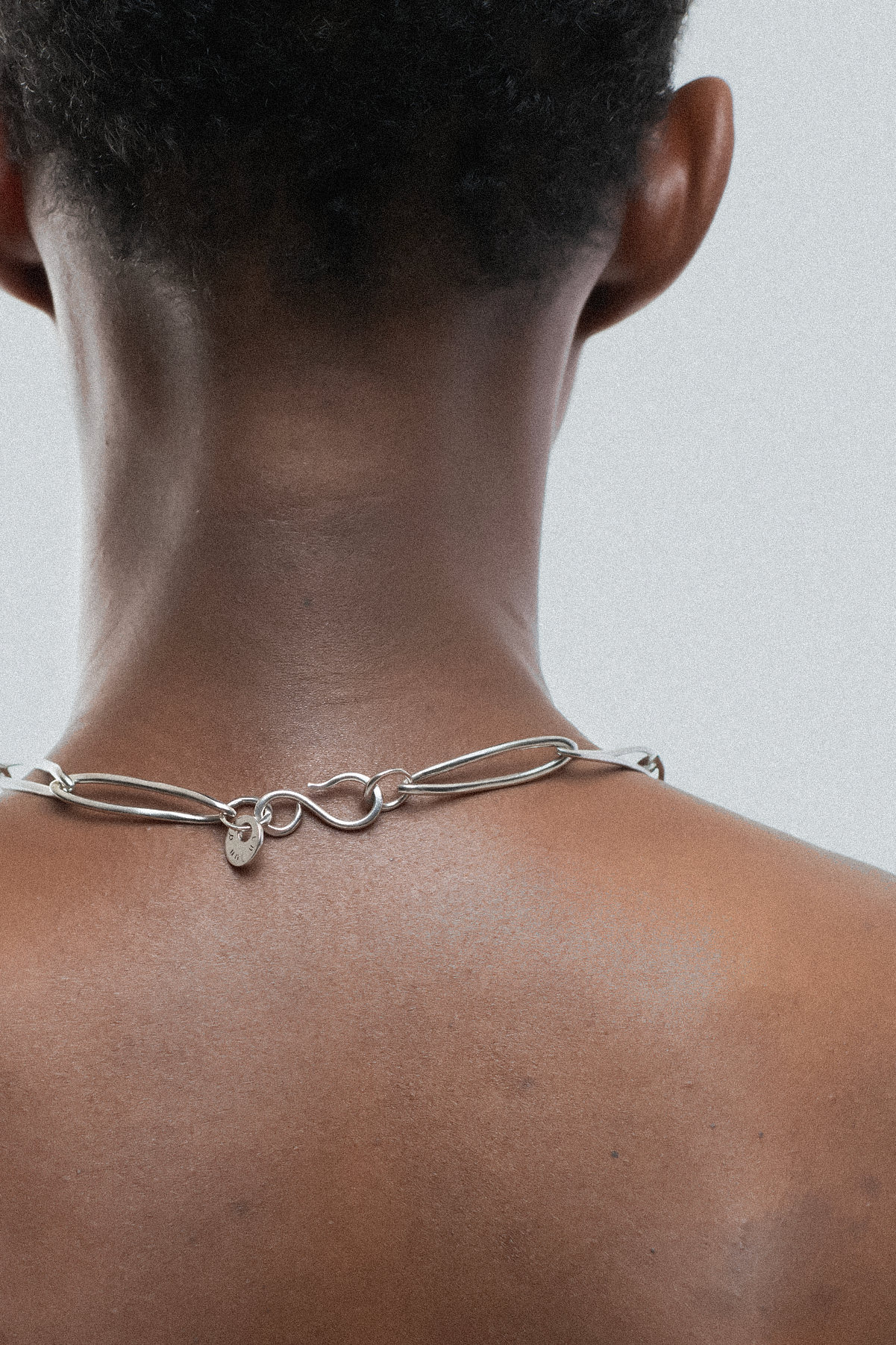 Crafted in a small Spanish atelier, our Martine necklace alternates between twisted and organic round links, finished with an organic hook-and-eye closure. The design traces back to our French heritage, inspired by our grandmother's bracelet. Distinctive enough to be noticed, refined enough to go anywhere. Each necklace is handmade by a silversmith, making every piece unique. Wear it alone or add the Odette pendant to transform it into something more.